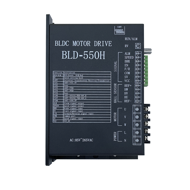 型号 峰值电流(A) 额定电流(A) 电压(V) 适配电机 尺寸(mm) BLD120 10.00 8.00 VDC12-36 60-180W 60*96*25 BLD300B 15.00 12.50 VDC12-60 180-330W 80*143*33 BLD750 25.00 20.00 VDC12-60 400-1000W 98*151*52 BLD50A 50.00 35.00 VDC18-60 1000-1800W 97*180*61 BLD100A 85A 65A VDC18-72V 1500-2500W 97*208*65 BC-90A 95A 75A VDC18-72V 1800-3000W 114*200*55 BLD550H 5.5A 4A VAC185-265 <550W 98*150*53 06-750 11A 7.5A VAC185-265 <1000W 140*178*58 06-2200 32A 21.5A VAC185-265 <3000W 167*203*72 06-3000 50A 35A VAC185-265 <5000W 147*203*78 尺寸图